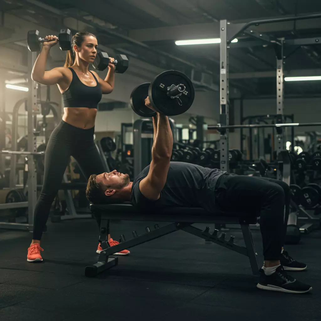 O programa inclui dois módulos completos de treino — um para quem treina em casa e outro para quem tem acesso à academia.